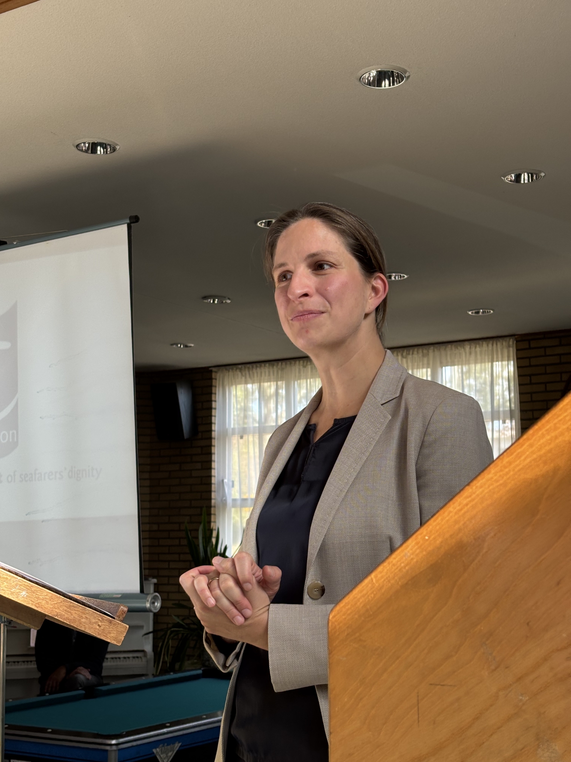 Larissa Eßinger nahm als Vertreterin der Deutschen Botschaft in Den Haag teil und sprach von der Bedeutung der Seeleute.